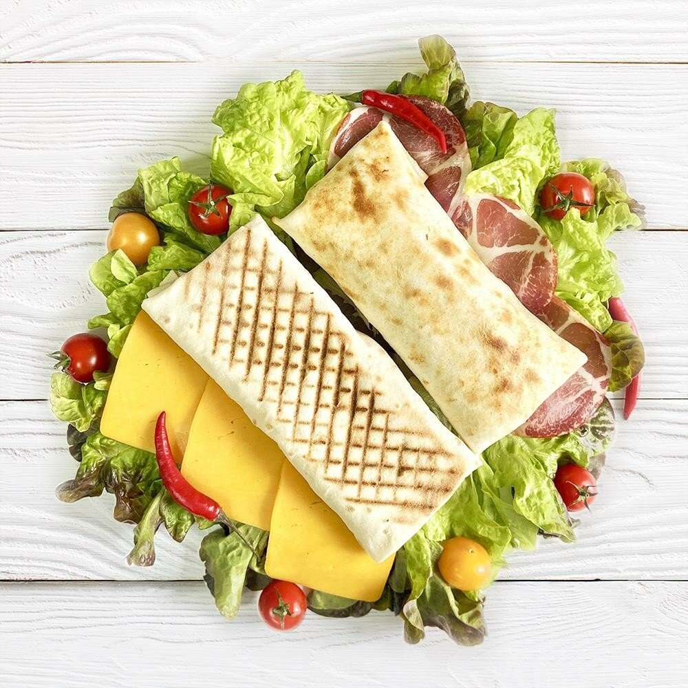 Тортилья, салат айсберг, томаты черри, сырный микс, огурец, соус на выбор