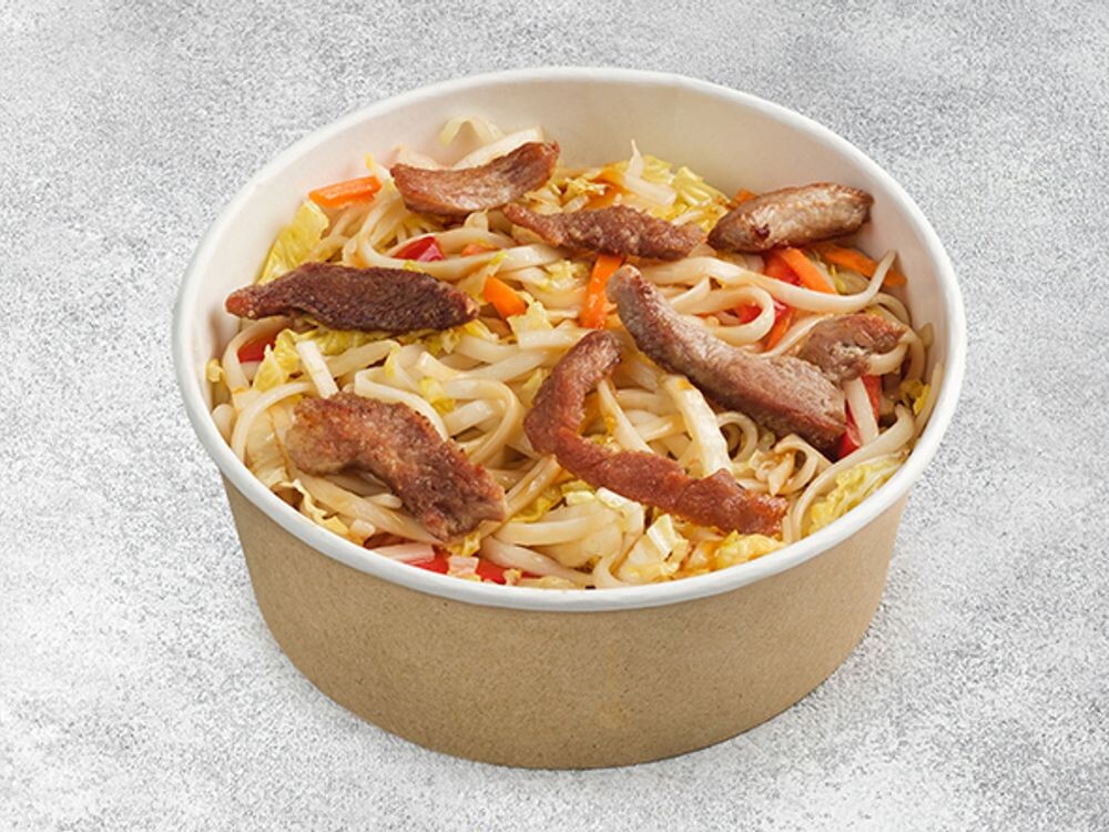 Лапша, соус на выбор, пекинская капуста, сладкий перец, морковь, цукини, свинина