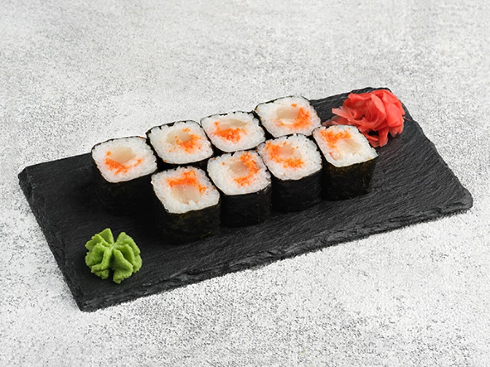 Рис, нори, гребешок, тобико